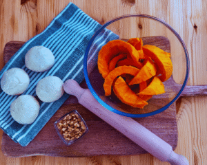 Chudu ist ein traditionelles, dünn ausgerolltes Fladenbrot, das in der Pfanne goldbraun gebraten wird. Es wird klassischerweise mit Kräutern, Quark & Käse oder Fleisch gefüllt. In dieser Variante ist eine herbstliche Interpretation mit aromatischem Kürbis, die durch ihren feinen Geschmack und ihre ausgewogene Würze überzeugt.