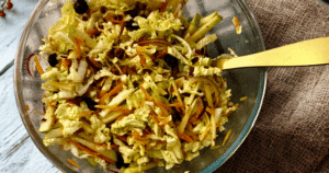 Ein frischer Mix aus Chinakohl, grünem Apfel und Karotte trifft auf die süße Note von Cranberrys und den Crunch von Pekannüssen. Das einfache Dressing aus Olivenöl, Balsamico und Senf sorgt für eine würzige Balance und macht diesen Salat zu einer leichten, knackigen Genussidee.